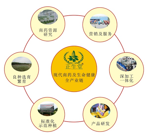 通过南药资源研究、、、良种繁育、、标准化示范种植、、产品研发、、、深加工、、营销与服务一体化的完整产业链及闭环模式实现