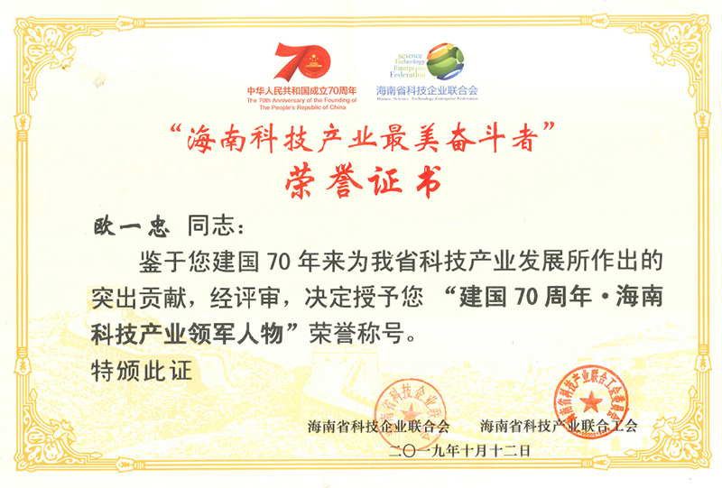 上一篇:“海南省酒店与餐饮行业最美奋斗者”荣誉证书